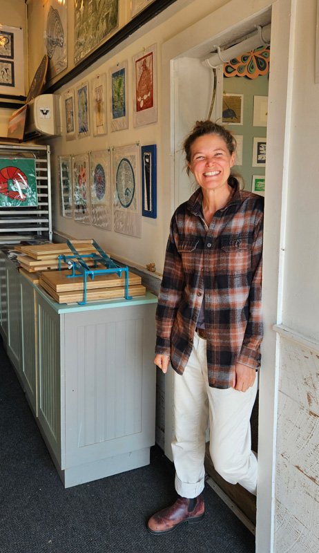 Althea offers open studio shopping, printmaking workshops, and creative wellness sessions. Her studio also serves as a CAMP internship site and a regular meeting spot for Vineyard Haven Harbor Cultural District gatherings.
